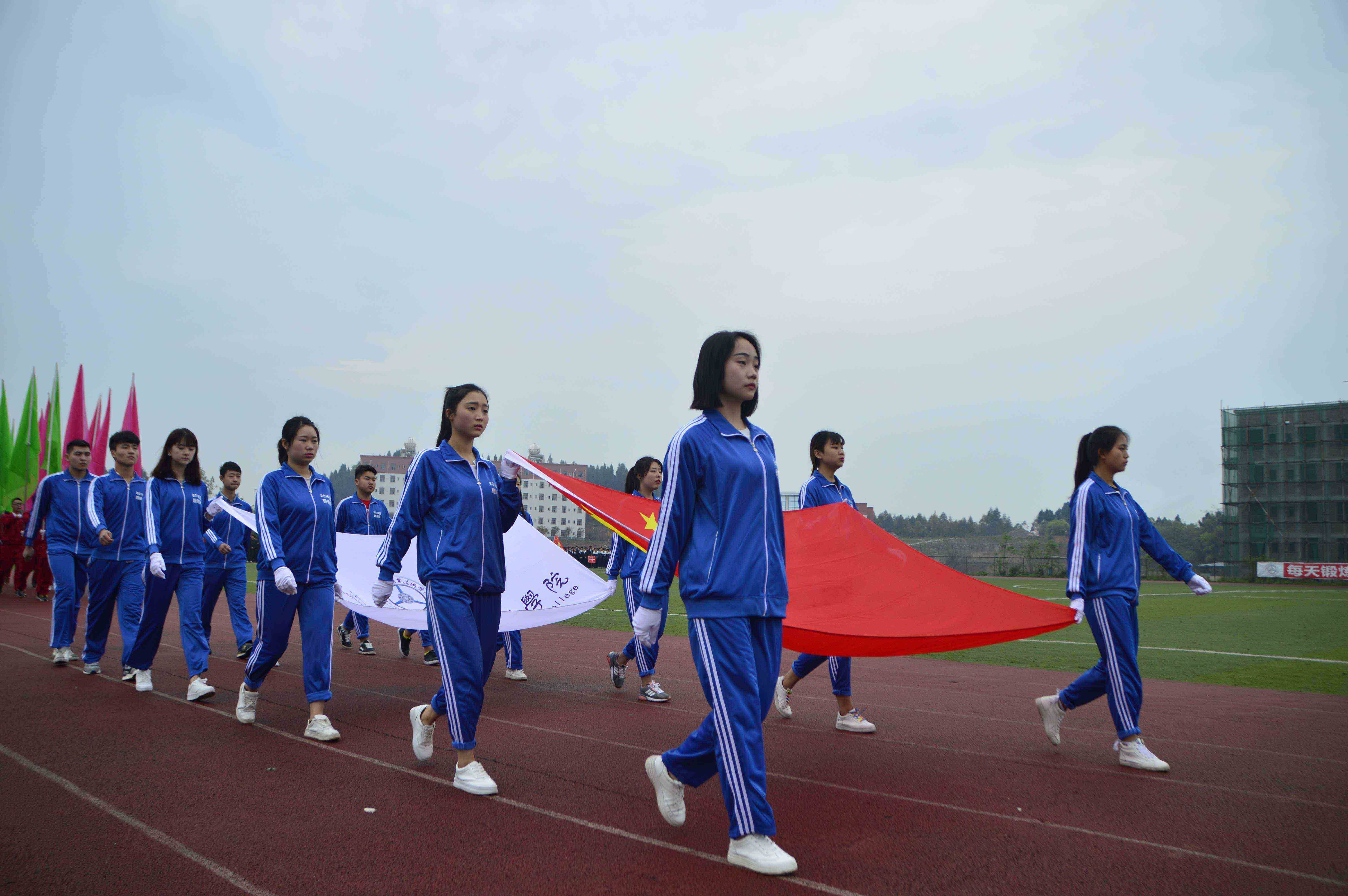 9時正鄧力軒書記宣布開幕式正式開始。隨即,國旗、校旗護衛(wèi)隊、各班級、教師方陣在嘹亮的運動員進行曲中邁著整齊的步伐,精神抖擻地步入會場。莊嚴的升旗儀式后,袁應(yīng)柏書記為本次活動致開幕辭,裁判員代表、運動員代表莊嚴宣誓!緊接著,學(xué)院團委和學(xué)生會的同學(xué)們給全院師生帶來了青春洋溢、活力四射的舞蹈表演,使開幕式的熱烈氣氛達到一個高潮。最后,由學(xué)院袁應(yīng)柏書記宣布2017年體育藝術(shù)科技活動周開幕。