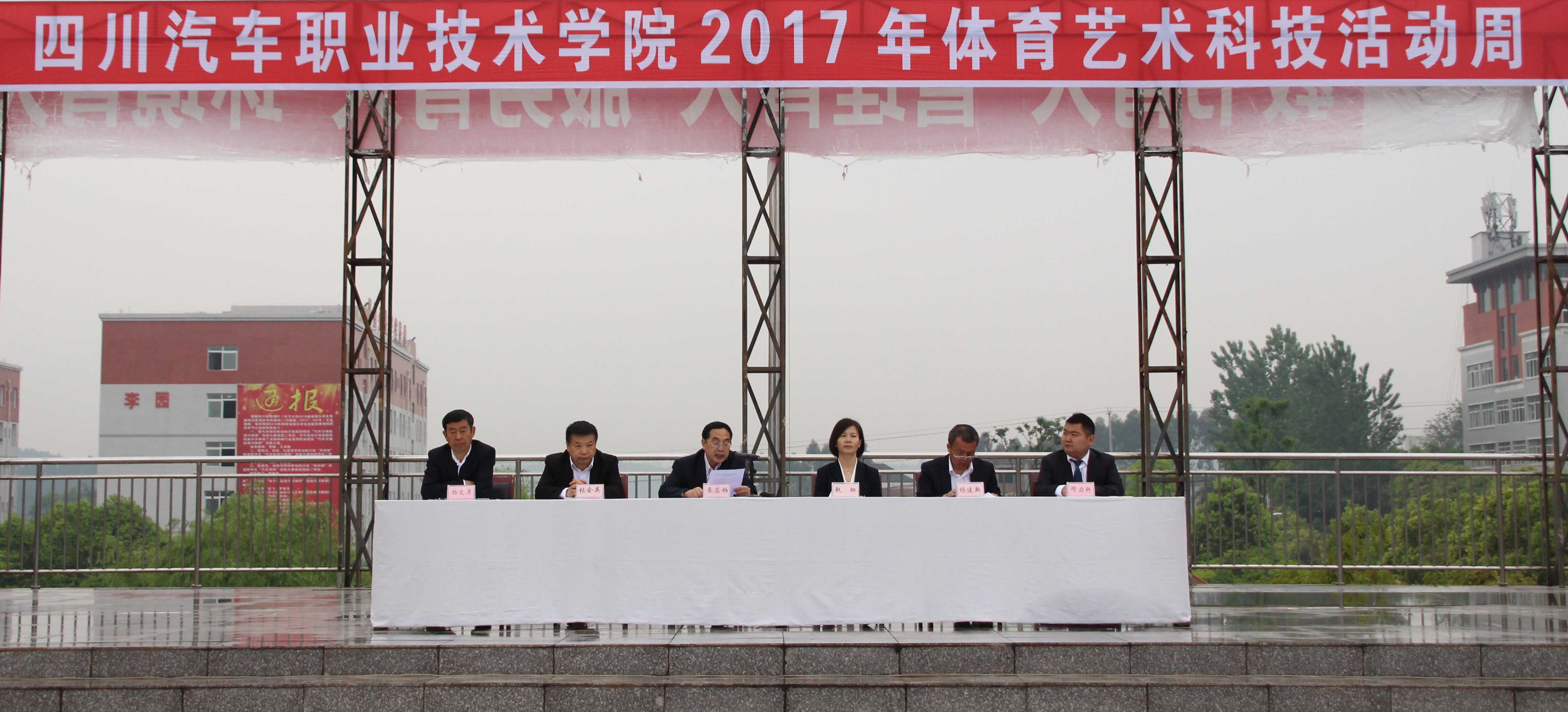 2017年4月25日上午,四川汽車職業(yè)技術(shù)學(xué)院一年一度的“體育藝術(shù)科技活動周”在學(xué)院體育場隆重開幕。學(xué)院黨委書記袁應(yīng)柏、副院長趙虹、張會英、楊建新、楊文勇出席了開幕式,袁應(yīng)柏書記致開幕辭,學(xué)院黨委委員、團委書記鄧力軒主持了開幕式。