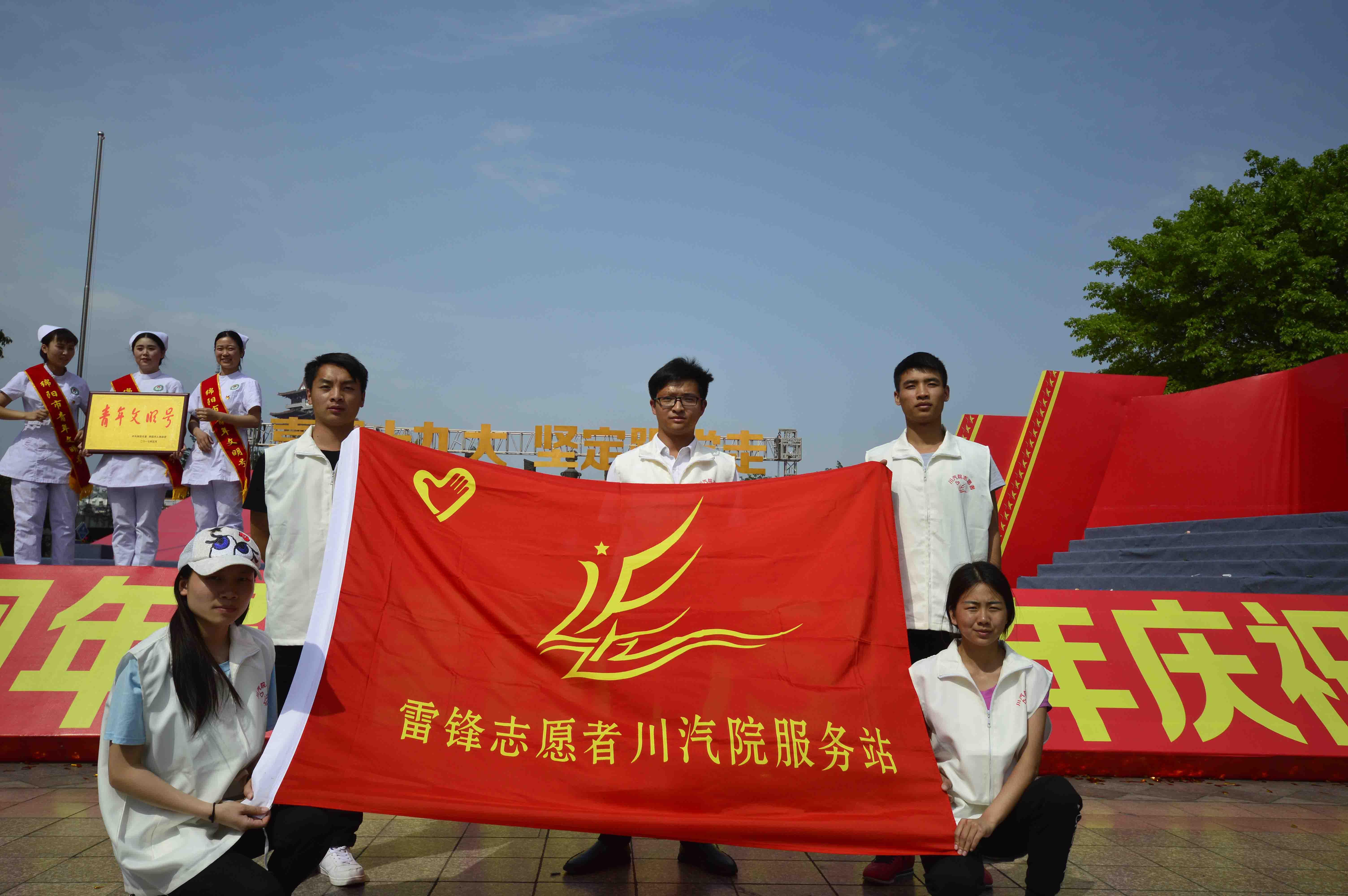 “青年文明號(hào)”代表宣讀誓詞是本次活動(dòng)一個(gè)莊嚴(yán)的時(shí)刻,我校三名青年代表“奮發(fā)圖強(qiáng)、矢志報(bào)效祖國(guó)”的錚錚誓言擲地有聲、振奮人心,贏得在場(chǎng)觀(guān)眾的熱烈掌聲;我校選拔出20名學(xué)生組成的彩旗隊(duì)參加了文藝表演,彩旗舞動(dòng),青春飛揚(yáng),川汽院青年學(xué)子的活力與朝氣深深的感染了在場(chǎng)觀(guān)眾;川汽院青年志愿者協(xié)會(huì)的同學(xué)也加入后勤服務(wù)隊(duì),為大會(huì)順利進(jìn)行做了大量的工作。
