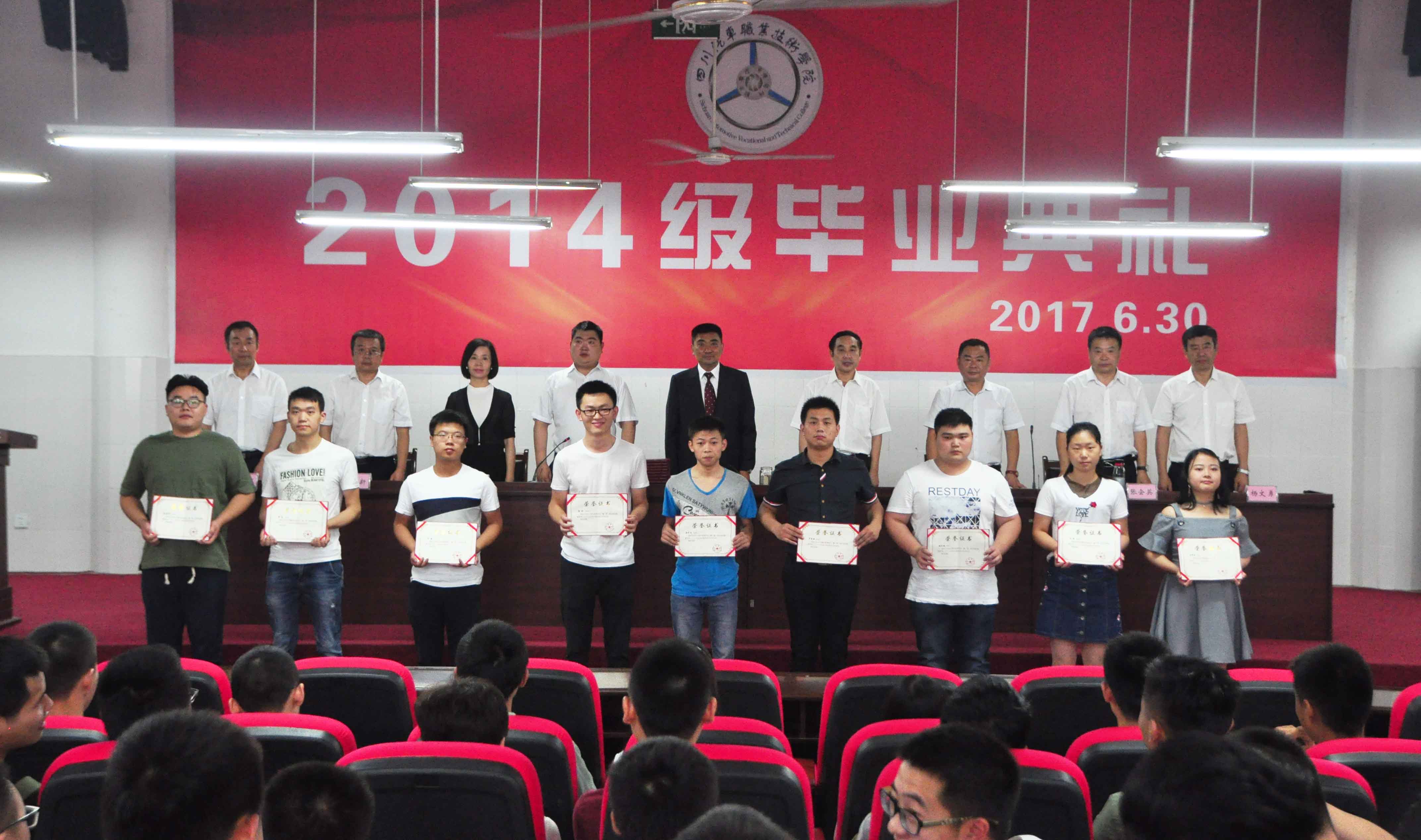2017年6月30日一大早,校園里就彌漫著濃濃的離情別緒。9點正,2014級畢業(yè)生、家長代表及老師齊聚學(xué)術(shù)報告廳,隆重舉行2014級畢業(yè)典禮。學(xué)校董事長、院長鄧斌、黨委書記袁應(yīng)柏、副院長楊軍、趙虹、張會英、楊建新、楊文勇出席了典禮,黨委副書記鄧力軒主持了典禮。我校2014級共有1410名同學(xué)圓滿完成學(xué)業(yè),取得了畢業(yè)證書。