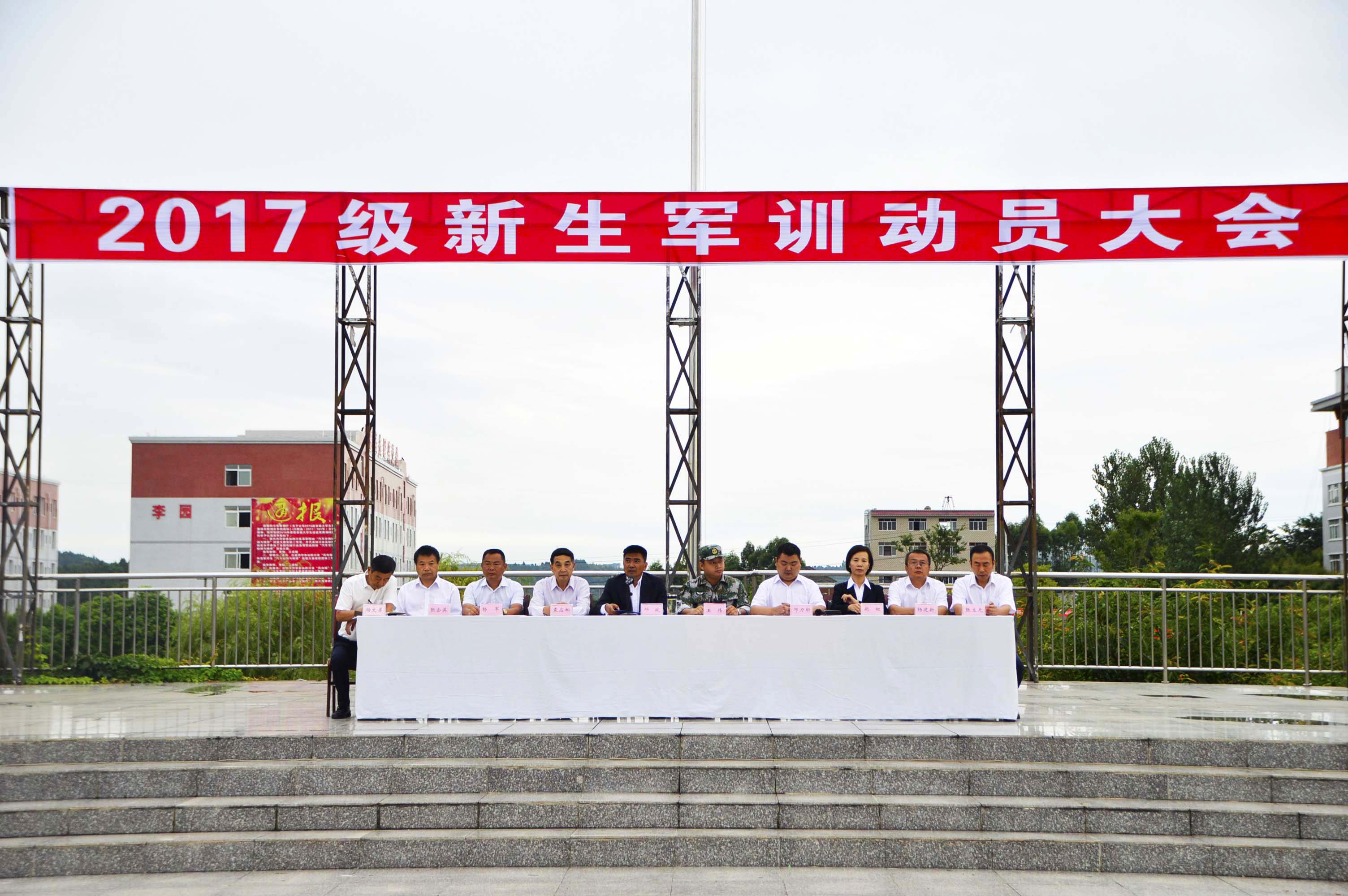9月4日上午,秋高氣爽、涼風(fēng)習(xí)習(xí),四川汽車(chē)職業(yè)技術(shù)學(xué)院2017級(jí)新生軍訓(xùn)動(dòng)員大會(huì)在足球場(chǎng)隆重召開(kāi)。學(xué)校領(lǐng)導(dǎo)和四川陸軍預(yù)備役高射炮兵師第三團(tuán)司令部偵察股股長(zhǎng)王偉上尉在主席臺(tái)就座,2017級(jí)全體同學(xué)及教官整齊列隊(duì)。大會(huì)由學(xué)校黨委副書(shū)記鄧力軒主持,學(xué)校董事長(zhǎng)、院長(zhǎng)鄧斌作“丹心寫(xiě)春秋,鐵骨鑄軍魂”的講話。