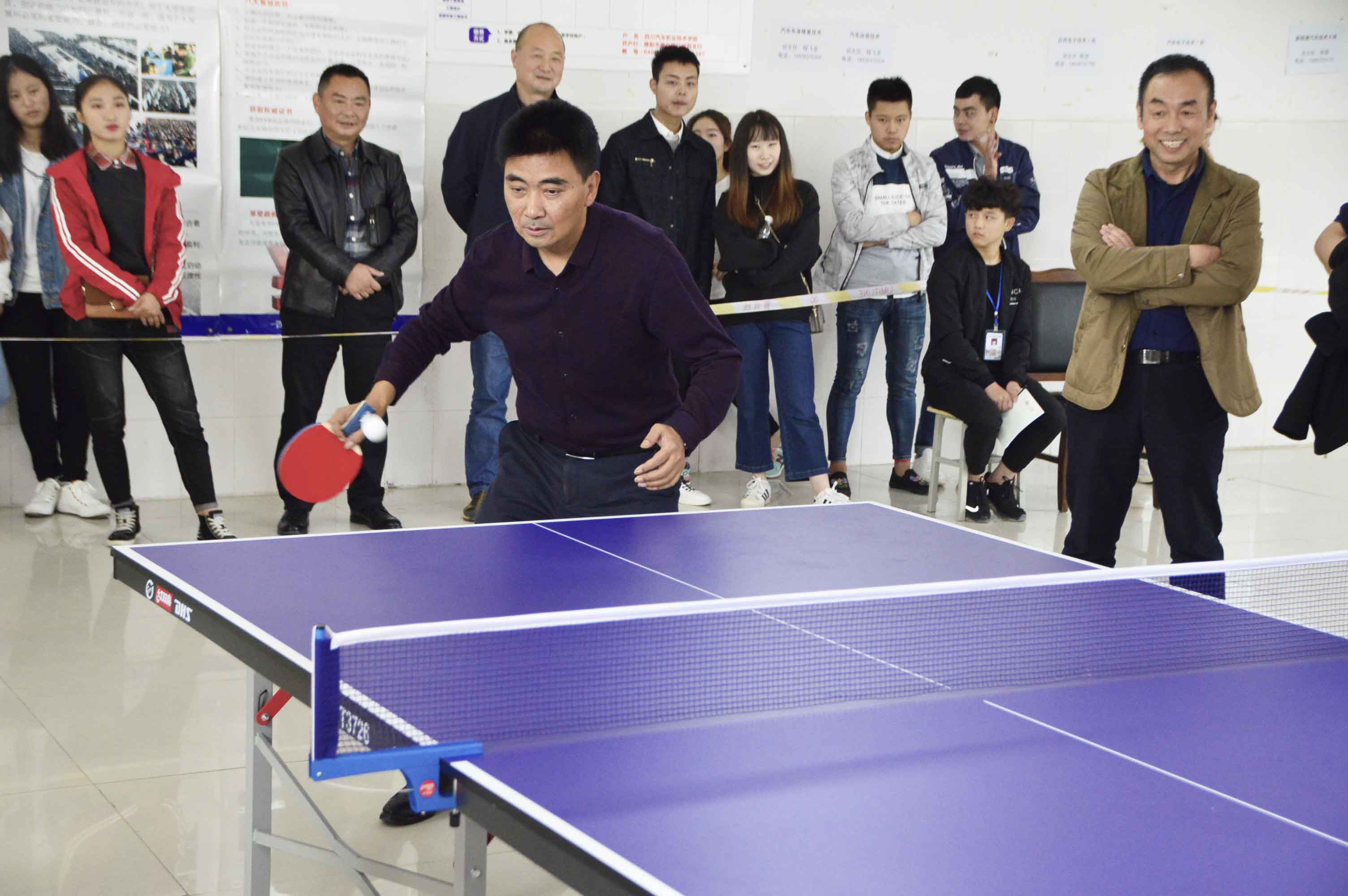 一號(hào)球桌旁更是人聲鼎沸,掌聲起伏。原來(lái)學(xué)校鄧斌院長(zhǎng)也輕裝上陣。只見(jiàn)他左右開(kāi)弓,上旋下挑,長(zhǎng)調(diào)短擊,正手搓,反手旋,弄得對(duì)手首尾難顧,長(zhǎng)短不及,連連失手。鄧斌院長(zhǎng)與楊建新副院長(zhǎng)組成黃金搭檔,成為賽場(chǎng)特別風(fēng)景,兩人各守陣地,優(yōu)勢(shì)互補(bǔ),共御“特情”,一輪中順利出線,贏得一片喝彩。