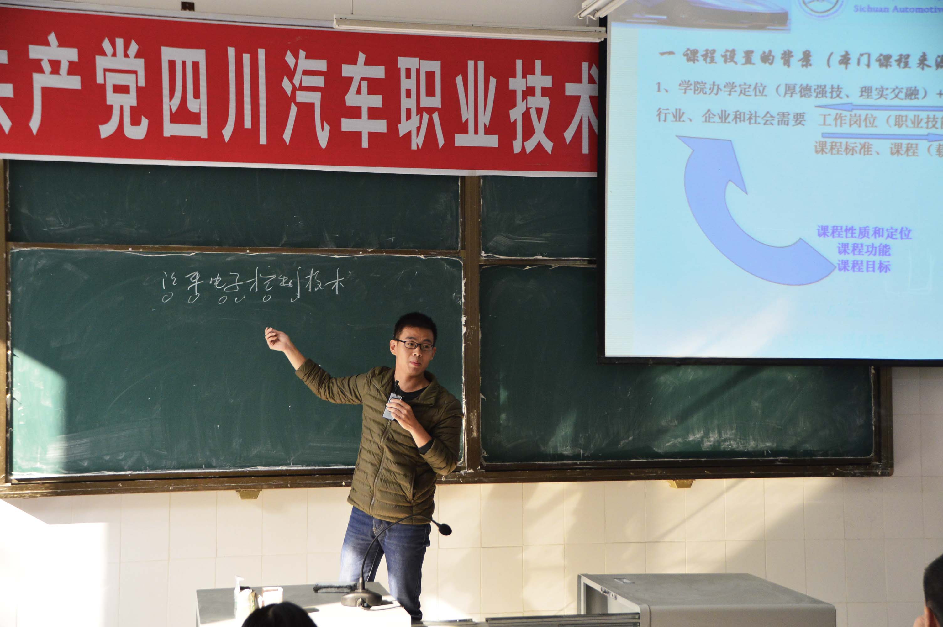 本次競賽總共分5輪進行, 5輪比賽結(jié)束后進行綜合評比。此次說課比賽是本次競賽的第一輪,采取現(xiàn)場隨機抽選5名教師參賽的形式進行,鄧斌院長按教務(wù)處提供的全校教師名單抽選出汽車工程系馬劍教授、基礎(chǔ)部張楠教授、機電系朱永奎老師、經(jīng)管系劉洪秀老師和公路系茍曉梅老師參加比賽。
