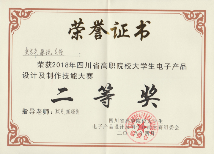 4月14日,由四川省教育廳主辦,成都紡織高等專科學(xué)校承辦的2018年四川省高職院校大學(xué)生電子產(chǎn)品設(shè)計及制作技能大賽圓滿結(jié)束。本次比賽共25個學(xué)校、26支隊伍參加,我校機電工程系學(xué)生張銳、龔忠平、吳俊組成的參賽團隊在狄飛、熊超有老師的帶領(lǐng)下參加了本次比賽并榮獲二等獎。
