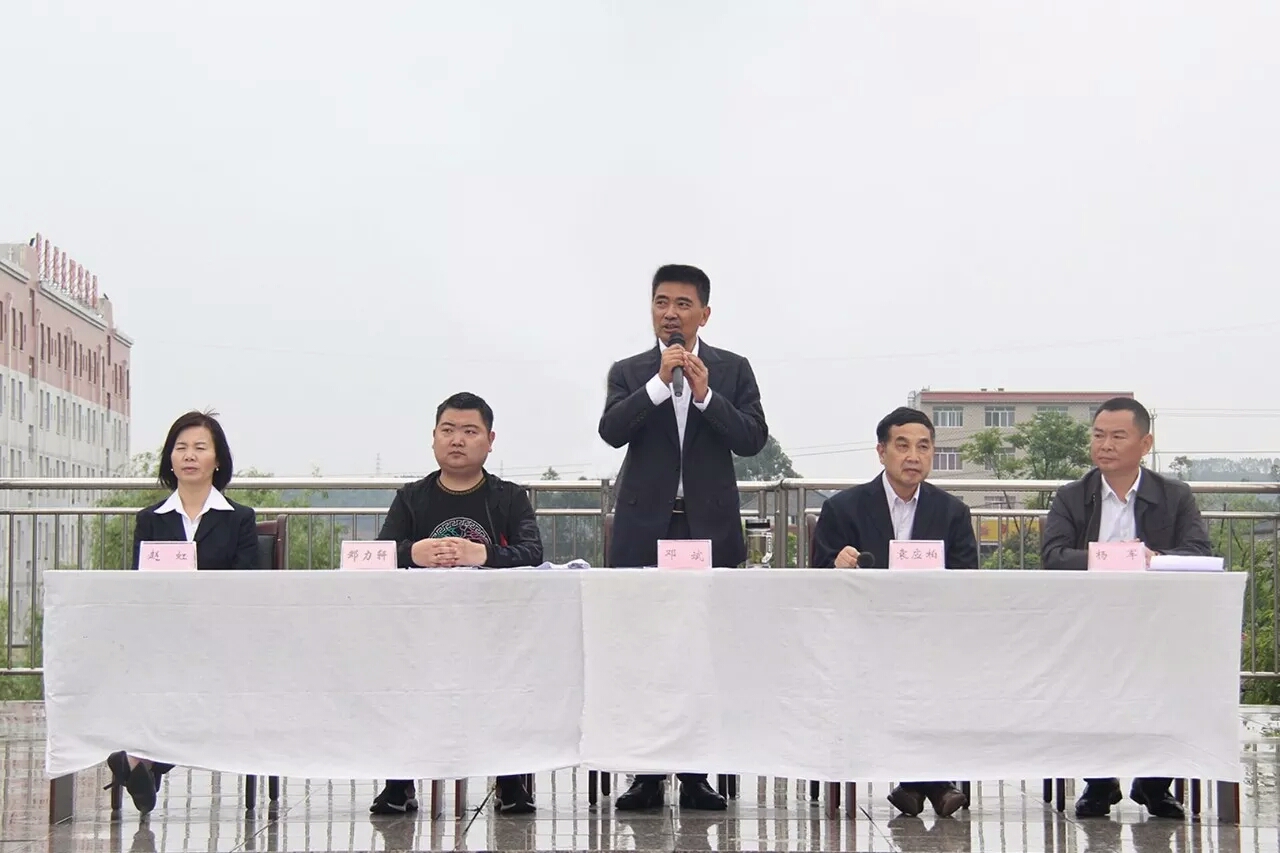 運動場上鮮花綻放、彩旗招展,學(xué)生們身著統(tǒng)一服裝整齊列隊,雖然下著蒙蒙細雨,但卻抵擋不住老師和同學(xué)們的激情,整個會場熱烈而歡快。莊嚴的升旗儀式結(jié)束后,鄧斌院長為本次活動致開幕辭。