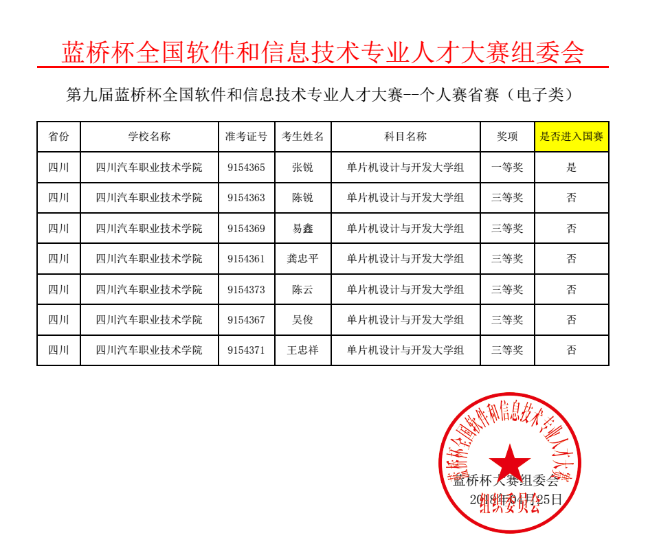2016級(jí)汽車電子技術(shù)專業(yè)學(xué)生,先后榮獲“優(yōu)秀班干部”、“優(yōu)秀團(tuán)支書”、“三好學(xué)生” 等榮譽(yù)稱號(hào),獲得2016 -2017學(xué)年“國(guó)家勵(lì)志獎(jiǎng)學(xué)金”。榮獲第八、九屆“藍(lán)橋杯”全國(guó)軟件和信息技術(shù)專業(yè)人才大賽(省賽)“三等獎(jiǎng)”, 2018年四川省高職院校大學(xué)生電子產(chǎn)品設(shè)計(jì)及制作技能大賽“二等獎(jiǎng)”等獎(jiǎng)項(xiàng)。