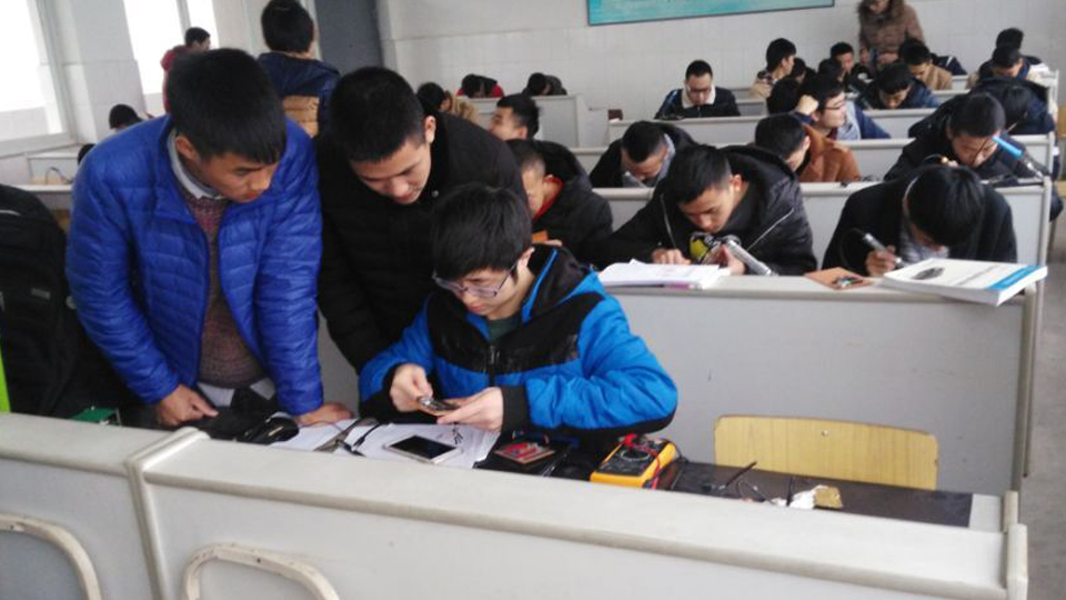 自2017年底接到比賽任務(wù)后,學(xué)校領(lǐng)導(dǎo)高度重視,積極動(dòng)員,迅速組建好參賽團(tuán)隊(duì)。今年1月,指導(dǎo)老師狄飛就早早地組織賽前培訓(xùn)。他利用寒假,通過社交軟件、藍(lán)墨云班課等手機(jī)應(yīng)用在網(wǎng)上發(fā)布訓(xùn)練任務(wù),通過自學(xué)自練、在線答疑、遠(yuǎn)程協(xié)助等方式對(duì)同學(xué)們包括IAP15F2K61S2單片機(jī)系統(tǒng)資源、各功能模塊函數(shù)等在內(nèi)的理論知識(shí)進(jìn)行了鞏固深化,真正體現(xiàn)了鄧院長(zhǎng)提出的一體化教學(xué)與“三新兩現(xiàn)”的緊密結(jié)合。同學(xué)們白天練習(xí),老師則在晚上進(jìn)行任務(wù)檢查,這樣的培訓(xùn)持續(xù)了一個(gè)半月,效果顯著。