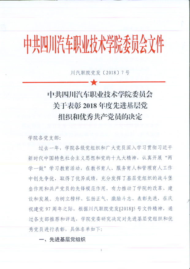 關(guān)于表彰2018年度先進(jìn)基層黨組織和優(yōu)秀共產(chǎn)黨員的決定