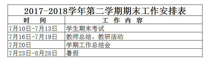 2017-2018學(xué)年第二學(xué)期期末工作安排表