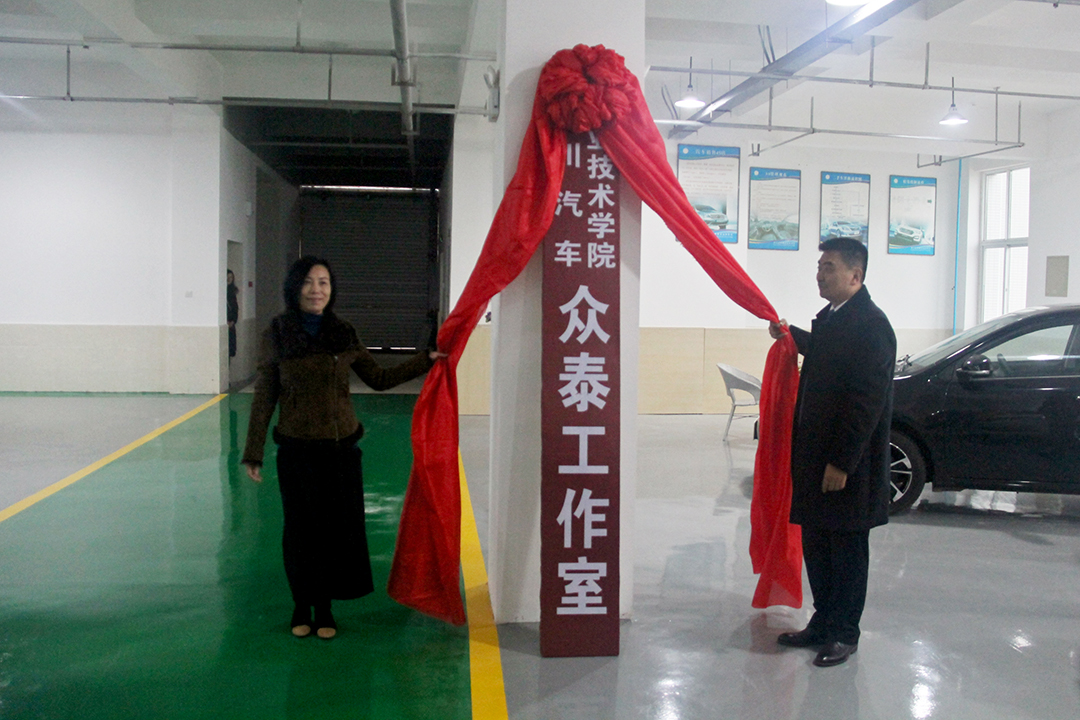簽約儀式結(jié)束后,鄧院長與浙江眾泰汽車制造有限公司人事總監(jiān)段蓮麗女士、浙江吉利控股集團(tuán)有限公司西南片區(qū)總經(jīng)理廖勇先生在工程訓(xùn)練中心分別為“四川汽車職業(yè)技術(shù)學(xué)院眾泰工作室”“四川汽車職業(yè)技術(shù)學(xué)院吉利工作室”揭牌。
