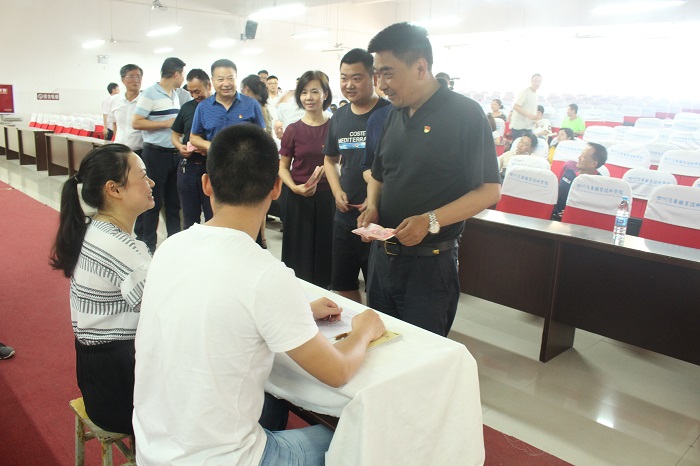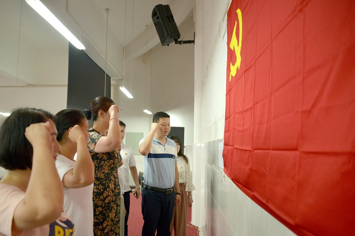 頒獎儀式后,付巍帶領預備黨員在莊嚴的黨旗下進行宣誓。