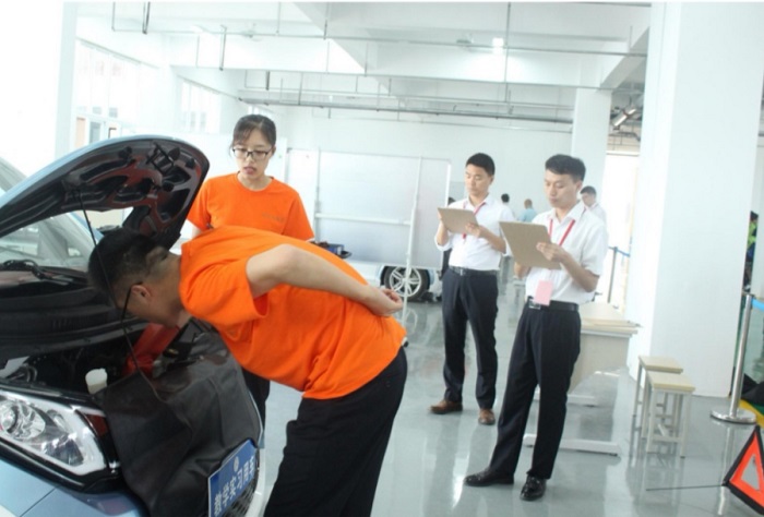 為深入貫徹實(shí)施我!昂竦聫(qiáng)技,理實(shí)交融”的辦學(xué)思想,深化我校教育教學(xué)改革,7月4日,機(jī)電工程系在工程訓(xùn)練中心新能源汽車實(shí)訓(xùn)中心B3樓舉辦2019年青年教師新能源汽車技術(shù)技能競賽。本次競賽由機(jī)電工程系主辦、由綿陽市王鵬技能大師工作室、新能源汽車教研室承辦。學(xué)校副院長趙虹教授、邊清泉教授出席了本次活動。