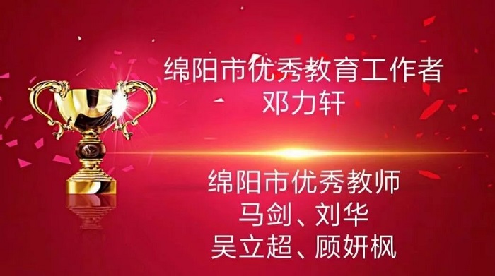 9月10日中共綿陽市委教育工作委員會、綿陽市教育和體育局對193名“綿陽市優(yōu)秀教師”和57名“綿陽市優(yōu)秀教育工作者”予以通報表揚?上部少R的是,我校黨委副書記鄧力軒、馬劍教授、劉華副教授、吳立超老師和顧妍楓老師五名教師分別獲得了綿陽市優(yōu)秀教育工作者和綿陽市優(yōu)秀教師的稱號。