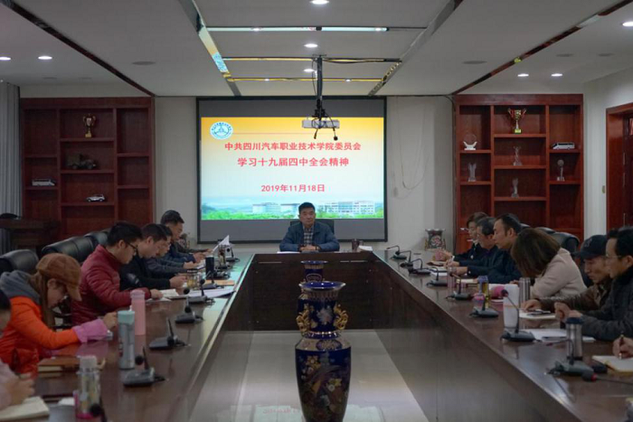 2019年11月18日上午,學(xué)校黨委書記袁應(yīng)柏教授組織全體中層以上干部及部分科級干部在行政樓二樓會議室學(xué)習(xí)十九屆四中全會精神。