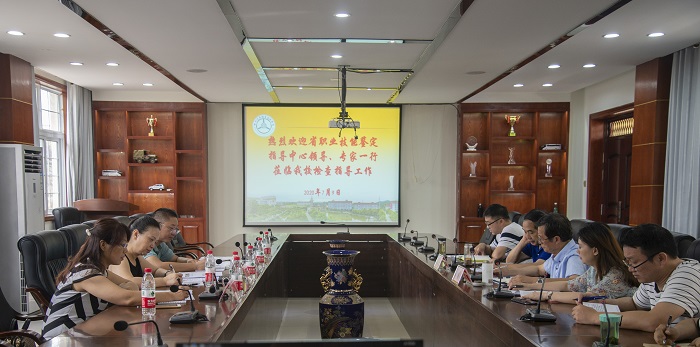7月9日上午,四川省職業(yè)技能鑒定指導(dǎo)中心鑒定受理部部長易翠玲、質(zhì)量管理部副部長陳世波、鑒定專家任菊燕蒞臨我院檢查指導(dǎo)工作。學(xué)院黨委書記袁應(yīng)柏、副院長邊清泉陪同檢查。