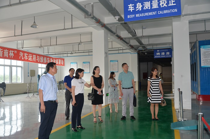 隨后,易翠玲一行參觀了我院工程訓(xùn)練中心,包括汽車整車實訓(xùn)室、二手車鑒定與評估實訓(xùn)室、王鵬大師工作室、新能源汽車電器實訓(xùn)室、ERP沙盤推演模擬實驗室、物流實訓(xùn)室、幼兒保育保健實訓(xùn)室等。專家組對我院的鑒定設(shè)施設(shè)備予以充分肯定。