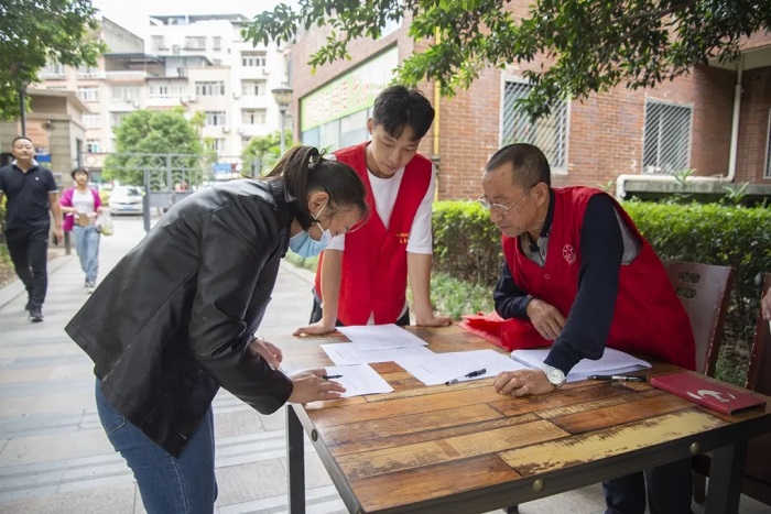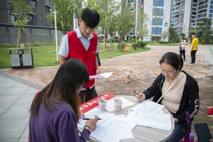 在社區(qū)黨委書記陳書記的簡短培訓(xùn)后,志愿者們分別前往了社區(qū)轄屬的文泉?jiǎng)P旋大道小區(qū)和東城國際小區(qū)開展志愿服務(wù)。