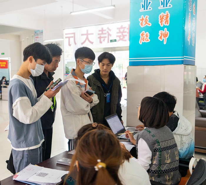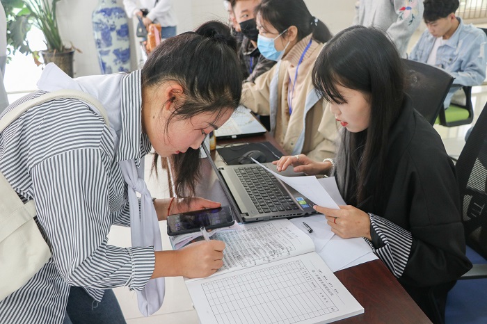 報(bào)到大廳里,提交資料、核對(duì)信息、繳納學(xué)費(fèi)、領(lǐng)取飯卡,每一項(xiàng)流程都有條不紊地進(jìn)行著,報(bào)到現(xiàn)場(chǎng)氣氛溫馨,充滿歡聲笑語(yǔ)。