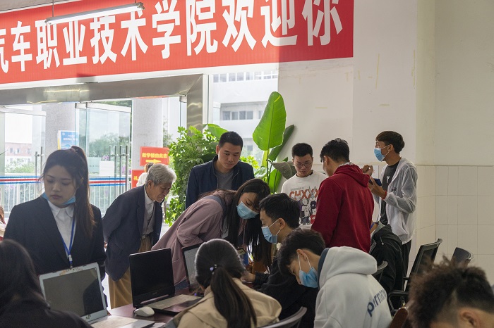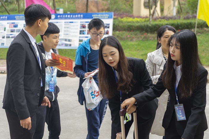 校園內(nèi),志愿者們真誠(chéng)服務(wù),帶領(lǐng)新生和家長(zhǎng)前往報(bào)到點(diǎn)!巴瑢W(xué),把行李放在這里,我們幫你保管,你先去大廳辦理入學(xué)手續(xù)”,學(xué)長(zhǎng)學(xué)姐們熱情地說到。