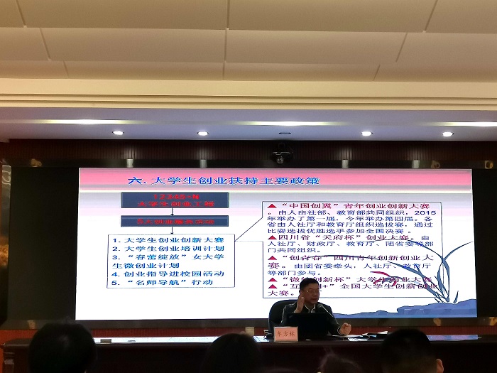 培訓(xùn)課上,四川省人社廳就業(yè)促進(jìn)處一級調(diào)研員牟方林重點(diǎn)介紹了我省大學(xué)生創(chuàng)業(yè)扶持主要政策,并為參訓(xùn)學(xué)員答疑解惑。
