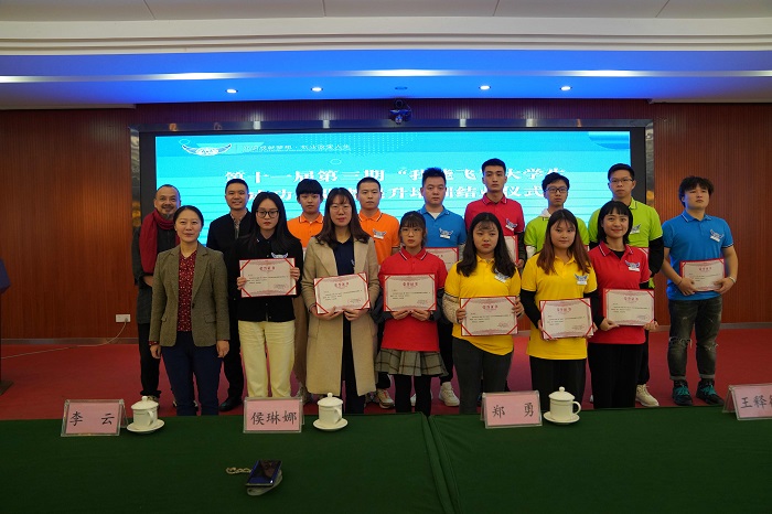 結(jié)業(yè)典禮上,我院大學(xué)生創(chuàng)新創(chuàng)業(yè)促進(jìn)會主席李小峰發(fā)言表示,通過此次培訓(xùn),自己學(xué)到了不少創(chuàng)業(yè)知識,團(tuán)隊(duì)建設(shè)、企業(yè)經(jīng)營管理能力得到了顯著提高,創(chuàng)新思維也有了較大突破,希望通過“我能飛”平臺與創(chuàng)業(yè)小伙伴們抱團(tuán)發(fā)展,在未來越走越遠(yuǎn)。
