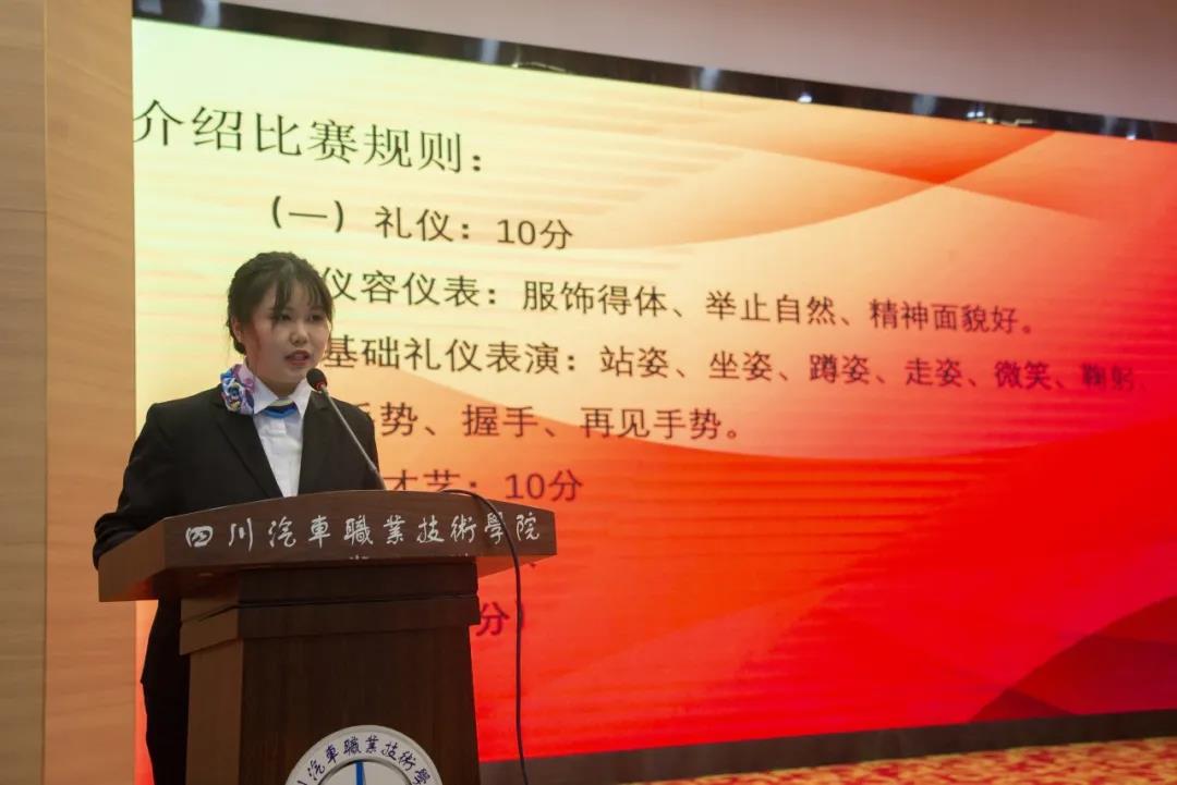 經(jīng)濟(jì)管理系學(xué)生會主席介紹比賽規(guī)則及評分標(biāo)準(zhǔn):本次比賽分為禮儀展示、才藝表演兩個環(huán)節(jié),共20分。禮儀包括儀容儀表和基礎(chǔ)禮儀表演,才藝展示形式不限。