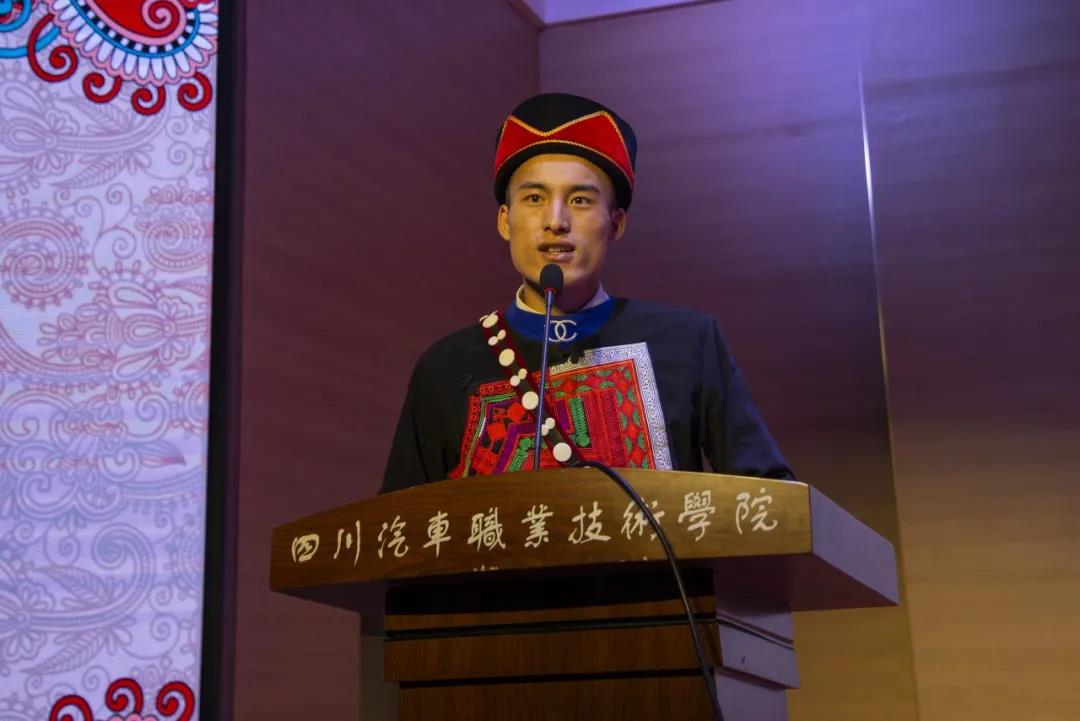 彝族同學馬海日合上臺發(fā)言,他表示,晚會的如期舉行離不開學院領導和老師的關心支持。新的一年應該有新氣象、新風采,他希望全體彝族同學借次機會展現(xiàn)自身良好的精神面貌,在未來的日子要不斷學習,確定目標,與川汽院一起進步、共同成長。