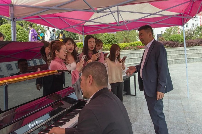 鄧斌院長(zhǎng)來(lái)到汽車(chē)文化廣場(chǎng),向每一位到來(lái)的考生表示慰問(wèn),他同學(xué)生一齊合唱,表達(dá)誠(chéng)摯滿(mǎn)滿(mǎn)的歡迎之情,各類(lèi)社團(tuán)齊上陣,各顯才藝,向新同學(xué)們問(wèn)好。