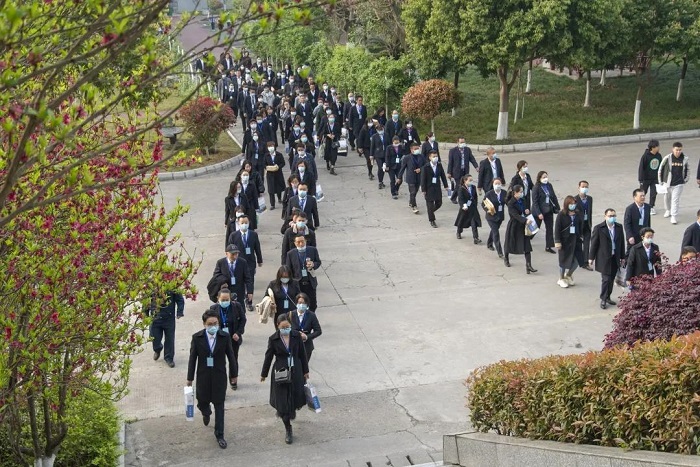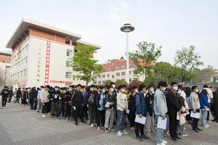 3月27日,上午7:50,我院參與本次單招考試的一百余名監(jiān)考教師集合完畢,領(lǐng)取試卷后,整齊邁入考場(chǎng)。