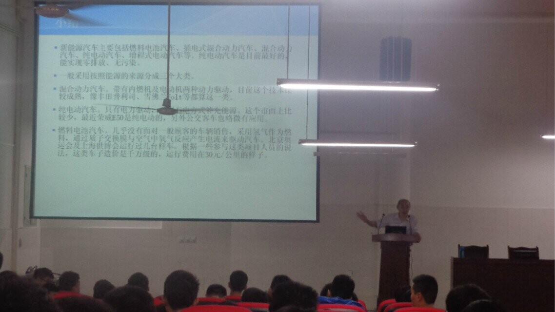 講座中,黃副教授以他多年在汽車(chē)行業(yè)累積的經(jīng)驗(yàn),從“我們?yōu)槭裁匆l(fā)展新能源汽車(chē)”、“新能源汽車(chē)的定義”、“混合動(dòng)力汽車(chē)”、“純電動(dòng)汽車(chē)”、“燃料電動(dòng)汽車(chē)”、“超級(jí)電容汽車(chē)”六個(gè)方面對(duì)新能源汽車(chē)的未來(lái)發(fā)展前景、汽車(chē)新技術(shù)的運(yùn)用以及新能源汽車(chē)在生活中使用價(jià)值等方面,做了全面透徹的講解。