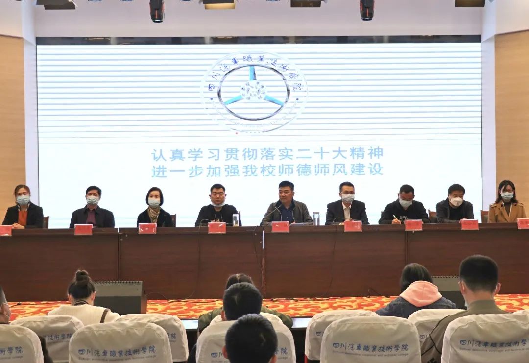 為認(rèn)真學(xué)習(xí)貫徹落實(shí)二十大精神,進(jìn)一步加強(qiáng)我校師德師風(fēng)建設(shè)。11月8日下午,我校在學(xué)校報(bào)告廳召開全體教職工大會(huì)。本次會(huì)議由我校董事長(zhǎng)、校長(zhǎng)鄧斌教授主持。全體教職員工參加了本次會(huì)議。