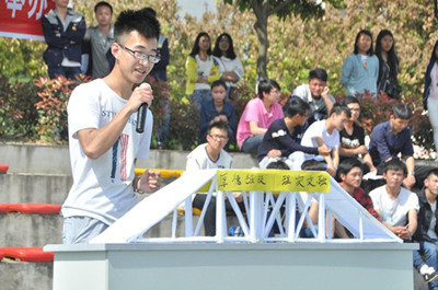 我院公路系于4月14日下午舉辦了首屆“魯班杯”紙橋承重設(shè)計大賽。學(xué)院黨委書記袁應(yīng)柏、黨委副書記張立光、副院長趙虹、院團委書記鄧力軒、經(jīng)濟管理系系主任邊清泉、經(jīng)濟管理系主任助理劉洪秀、汽車工程系主任助理熊斌等出席本次活動。本次活動的評委有教務(wù)處主任王駿、公路系教科室李仙仙、郭宇、茍曉梅、趙蕓妍。來自全院的25支隊伍125名同學(xué)參加了本次決賽。