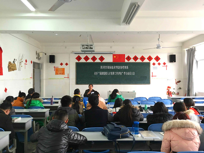 學院將于2018年接受教育部高等職業(yè)院校人才培養(yǎng)工作評估,評估工作對于學校既是一次提升更是一次挑戰(zhàn),經(jīng)管系對此給予高度重視。動員會上首先傳達了鄧院長在學院迎接評估工作動員會議精神,要求全院上下務必精誠團結(jié),勵精圖治,增強責任感和緊迫感,扎扎實實投入迎評工作。然后,邊主任就迎接2018年高等職業(yè)院校人才培養(yǎng)工作評估工作組織全系教職工認真學習了“教高[2008]5號《教育部關(guān)于印發(fā)《高等職業(yè)院校人才培養(yǎng)工作評估方案》的通知》”以及“川教[2009]41號《四川省教育廳關(guān)于印發(fā)《四川省高等職業(yè)院校人才培養(yǎng)工作評估實施細則(試行)》等文件的通知》”文件精神。邊主任重點講述了評估指標體系的7個一級指標和22個關(guān)鍵要素,并就此22個關(guān)鍵要素進行了深度剖析,從多層次、多方面重點講述評估工作中容易出現(xiàn)的各種問題,面對問題該怎樣具體去處理。