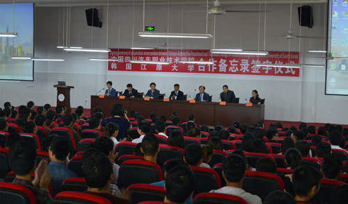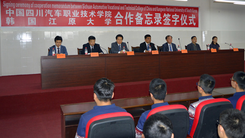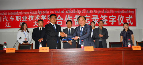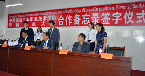 五月清和雨、葵花向日傾。2016年5月23日下午,我們迎來(lái)了四川汽車(chē)職業(yè)技術(shù)學(xué)院與韓國(guó)國(guó)立江原大學(xué)合作備忘錄簽字儀式。學(xué)院董事長(zhǎng)、院長(zhǎng)鄧斌,黨委書(shū)記袁應(yīng)柏副院長(zhǎng)張會(huì)英,韓國(guó)國(guó)立江原大學(xué)李正宇處長(zhǎng)、項(xiàng)目經(jīng)理吳周鉉等出現(xiàn)了簽字儀式。