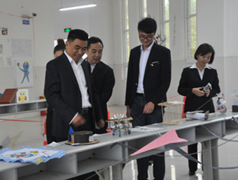 鄧斌院長(zhǎng)、黨委書記袁應(yīng)柏、趙虹副院長(zhǎng)參觀學(xué)生手工藝、科技小發(fā)明作品