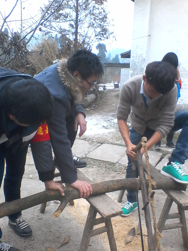 12月9日,我院志愿者的服務隊在隊長的帶領下來到新皂敬老院為做義工。隊員們幫老人們劈柴。男生負責將粗大的柴火鋸成小段,女生負責把鋸好的柴火搬到廚房整齊地擺好。由于大家分工明確,同心協(xié)力,不一會兒功夫,一大堆枯枝亂棒就被志愿者們拿下。雖然很辛苦,有的同學手都磨起了水泡,但是他們個個都洋溢著幸福的笑容,他們都以助人為樂而快樂、自豪。
