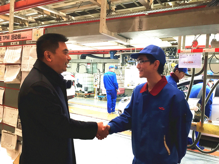 為了更好地踐行現(xiàn)代學(xué)徒制試點工作,落實“厚德強技,理實交融”的辦學(xué)理念,提升學(xué)生人力資本的價值,鄧院長在前往奇瑞汽車和長虹合肥分公司看望實習(xí)學(xué)生時,還與其相關(guān)領(lǐng)導(dǎo)洽談了校企合作事宜,讓更多更好的企業(yè)進入校園,同企業(yè)共同發(fā)展,為學(xué)生就業(yè)更好地服務(wù)。