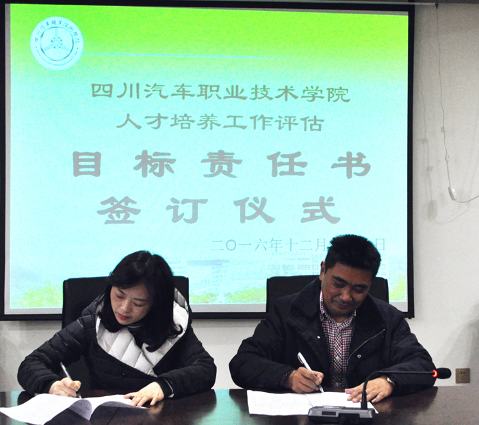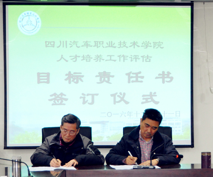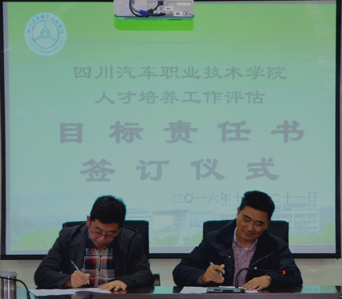 學院董事長、院長鄧斌,分別與各部門負責人簽訂《人才培養(yǎng)工作評估目標責任書》。