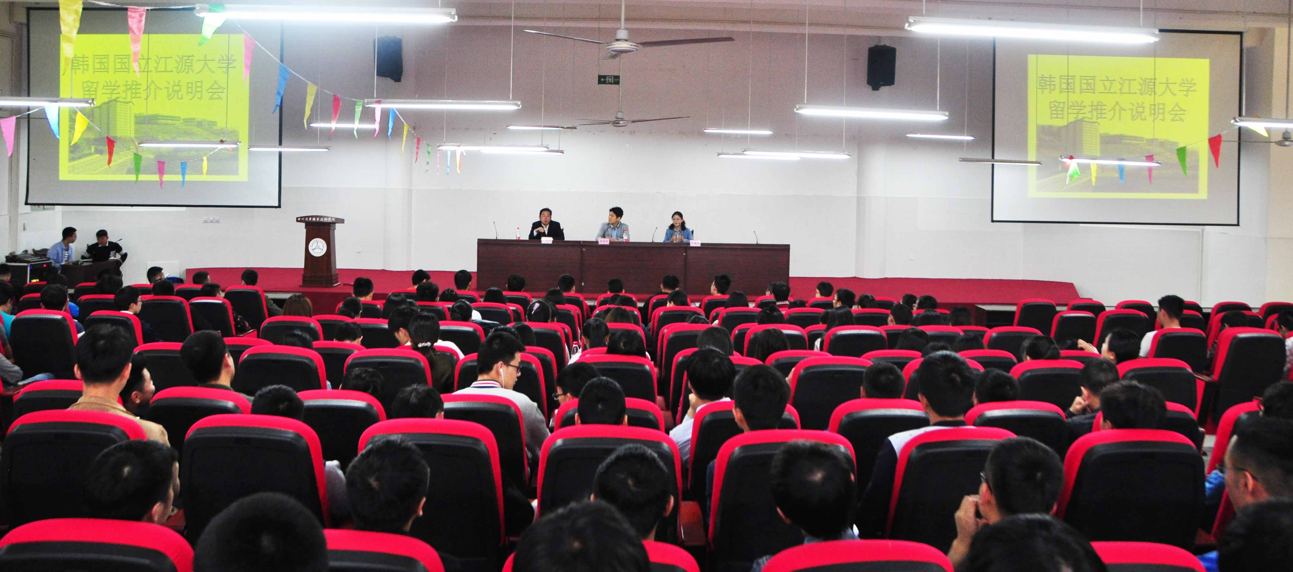 當(dāng)日下午,在學(xué)院學(xué)術(shù)報(bào)告廳舉行了韓國(guó)國(guó)立江原大學(xué)留學(xué)推介說(shuō)明會(huì),500余師生參加。