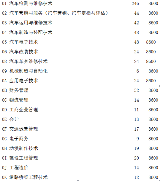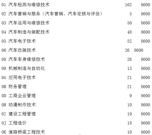 備注:1.以上專業(yè)代碼第一個是阿拉伯數字零,第二個是大寫字母。