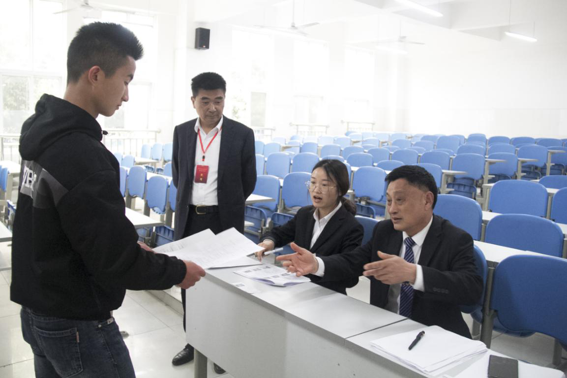 考試期間,四川省考試院巡視組李瑩、綿陽市招辦副主任文小平蒞臨我校檢查指導單招考試工作。主考官鄧斌,副主考官袁應柏等陪同巡視。