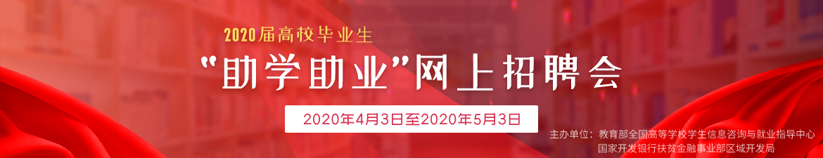 為進(jìn)一步做好疫情防控期間家庭經(jīng)濟(jì)困難大學(xué)生的就業(yè)幫扶工作,促進(jìn)就業(yè)脫貧、助力脫貧攻堅(jiān),教育部全國(guó)高等學(xué)校學(xué)生信息咨詢與就業(yè)指導(dǎo)中心將聯(lián)合國(guó)家開(kāi)發(fā)銀行扶貧金融事業(yè)部區(qū)域開(kāi)發(fā)局共同舉辦面向2020屆高校畢業(yè)生“助學(xué)助業(yè)"網(wǎng)上招聘會(huì)活動(dòng),現(xiàn)將有關(guān)事項(xiàng)通知如下。