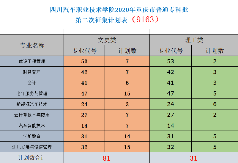 四川汽車(chē)職業(yè)技術(shù)學(xué)院(招生代碼:)現(xiàn)有部分高職(專(zhuān)科)批志愿征集計(jì)劃,面向成績(jī)達(dá)到重慶市專(zhuān)科控制分?jǐn)?shù)線而未被錄取的考生,現(xiàn)將征集志愿公告如下: