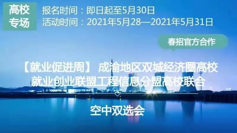 為落實(shí)重慶市教育委員會、四川省教育廳《關(guān)于印發(fā)〈成渝地區(qū)雙城經(jīng)濟(jì)圈高校就業(yè)創(chuàng)業(yè)協(xié)同發(fā)展行動方案〉的通知》(渝教學(xué)發(fā)〔2020〕12號)和成渝地區(qū)雙城經(jīng)濟(jì)圈高校就業(yè)創(chuàng)業(yè)聯(lián)盟第一屆理事會會議精神,有針對性的開展高校就業(yè)創(chuàng)業(yè)協(xié)同發(fā)展相關(guān)工作,進(jìn)一步促進(jìn)2020屆、2021屆畢業(yè)生就業(yè),成渝地區(qū)雙城經(jīng)濟(jì)圈高校就業(yè)創(chuàng)業(yè)聯(lián)盟工程信息分盟高校擬聯(lián)合舉辦就業(yè)促進(jìn)周專場空中雙選,共同為用人單位和大學(xué)生之間搭建便捷、高效的供需平臺。真誠邀請各單位參加,空中雙選平臺即日起開放,不收取參會費(fèi)用。