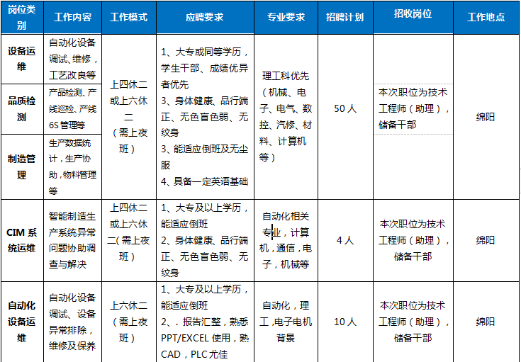 綿陽(yáng)京東方(B11):總投資465億元人民幣, 2019年7月量產(chǎn),公司位于四川省綿陽(yáng)市涪城區(qū)科發(fā)大道198號(hào)。是京東方攜手綿陽(yáng)市合作興建的第6代新型AMOLED柔性屏生產(chǎn)線,占地面積1200畝,主要從事柔性AMOLED手機(jī)顯示、新興移動(dòng)顯示面板及觸控模塊的研發(fā)、生產(chǎn)與銷售。目前處于項(xiàng)目發(fā)展期,大量?jī)?chǔ)備干部空缺。