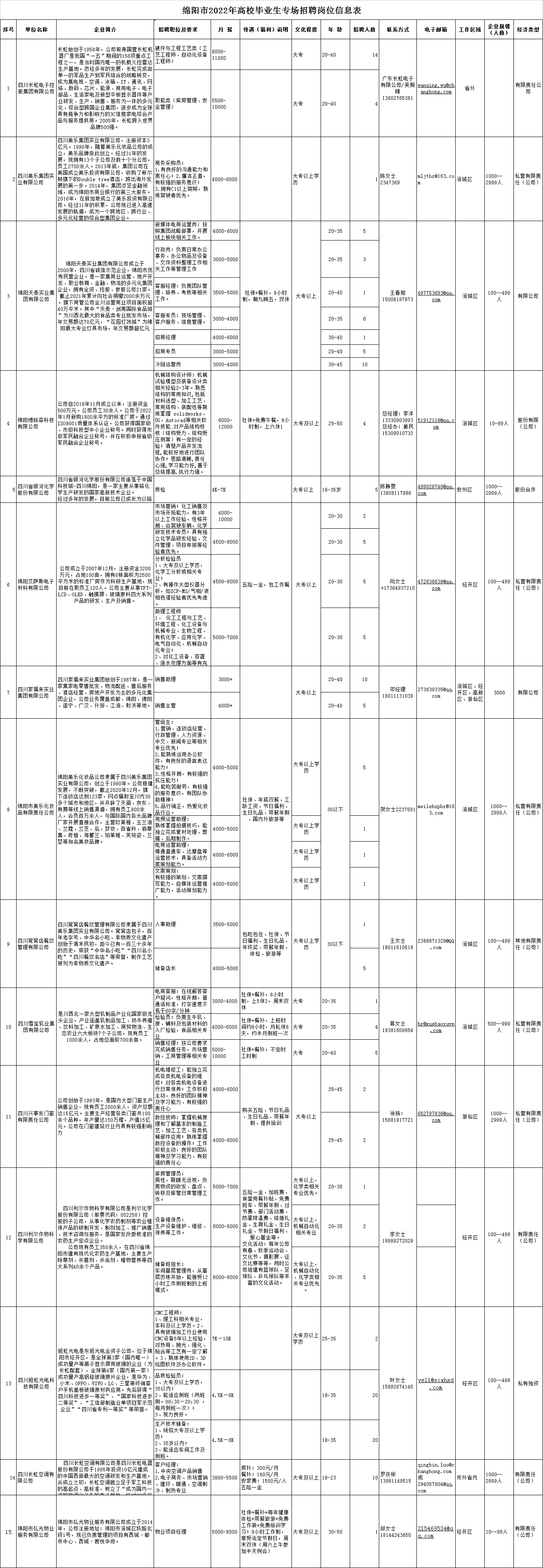 綿陽市高校畢業(yè)生就業(yè)創(chuàng)業(yè)專項服務之“職”面挑戰(zhàn)活動崗位信息表