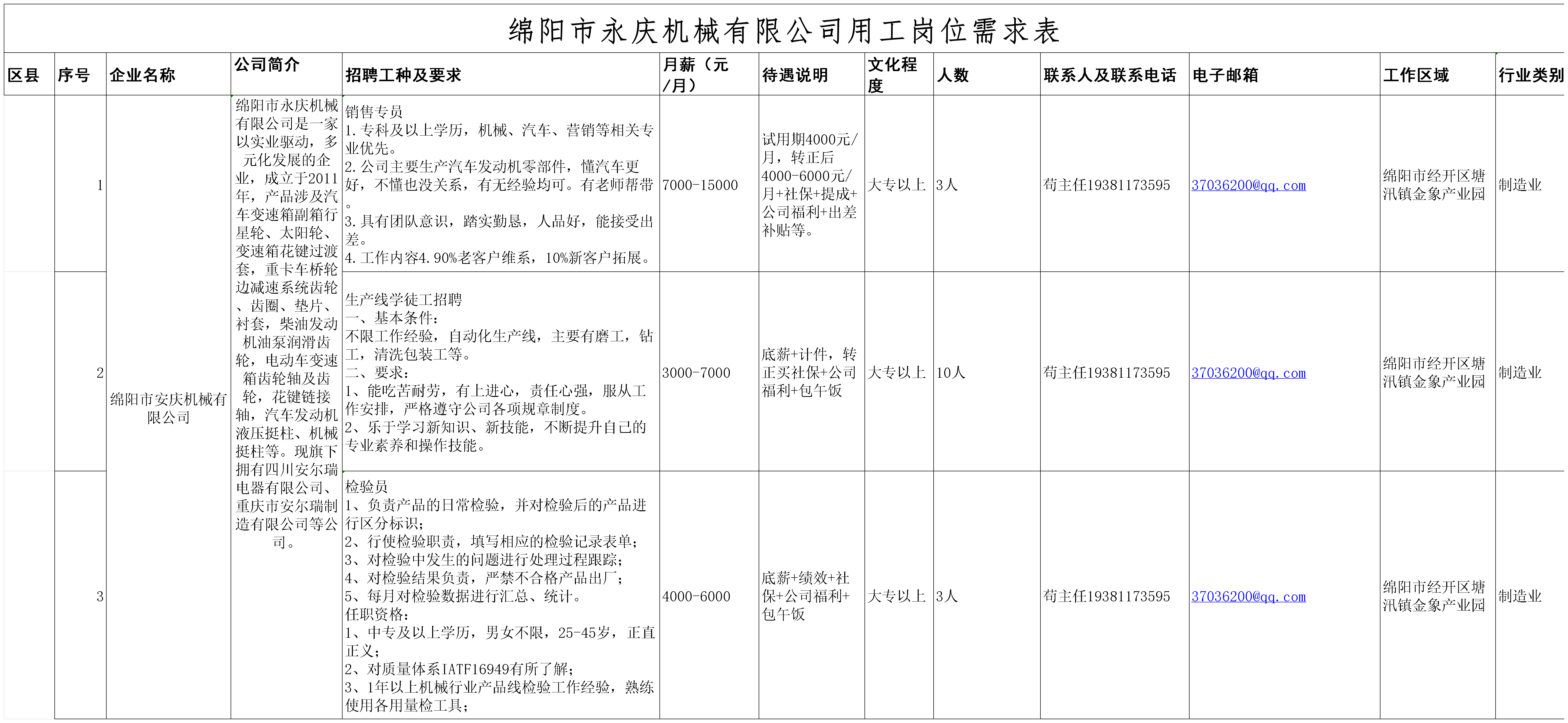 【春季促就業(yè)攻堅行動】綿陽市永慶機(jī)械有限公司簡介