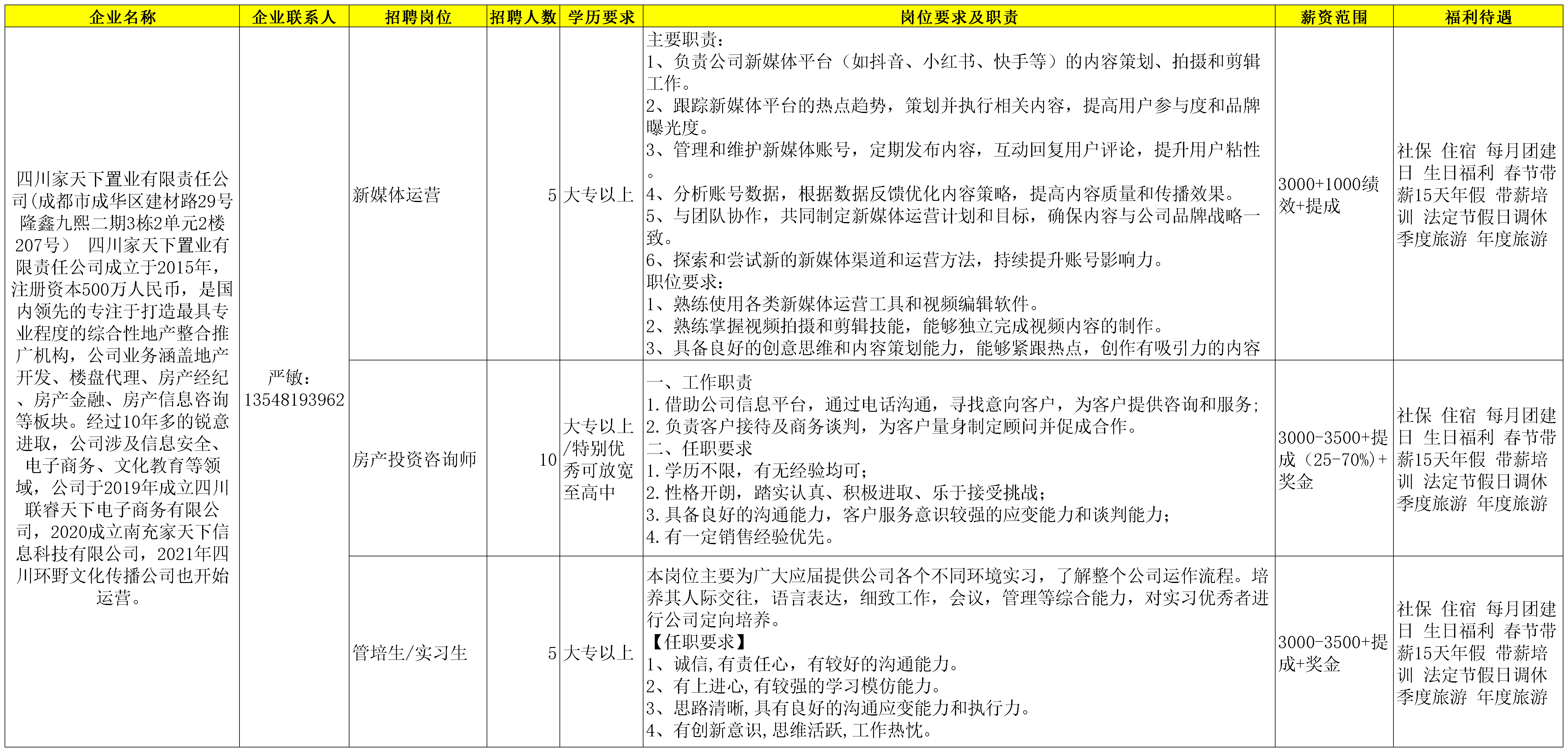 四川家天下置業(yè)有限責(zé)任公司招聘