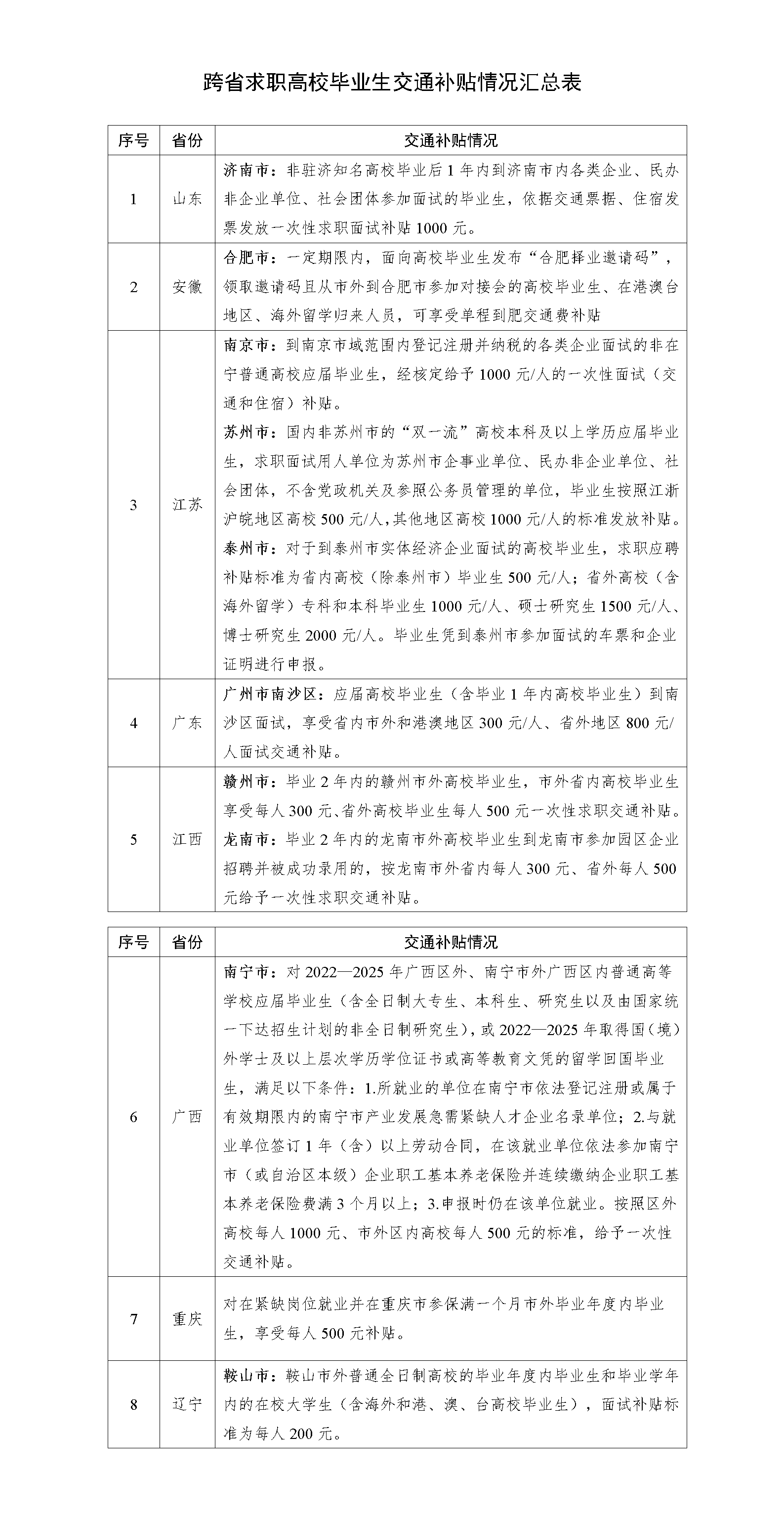 跨省求職高校畢業(yè)生交通補(bǔ)貼政策