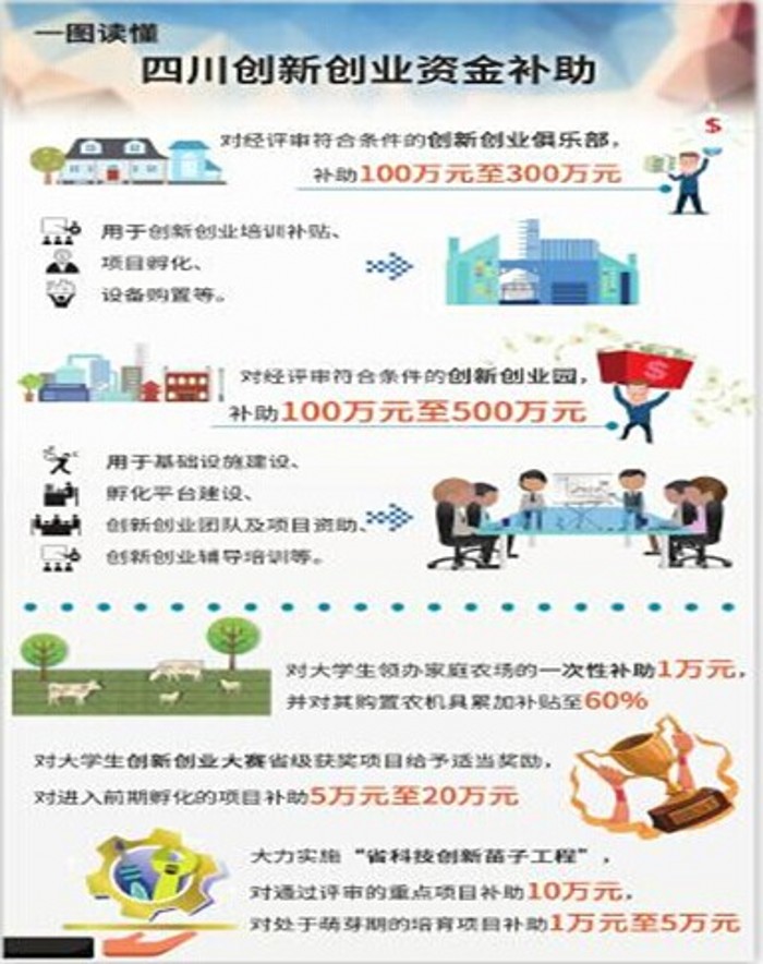 四川大學(xué)生創(chuàng)新創(chuàng)業(yè)再出利好政策。近日,省委辦公廳、省政府辦公廳聯(lián)合下發(fā)《關(guān)于改革完善體制機(jī)制大力促進(jìn)大學(xué)生和科技人才創(chuàng)新創(chuàng)業(yè)的意見》(以下簡(jiǎn)稱《意見》),加大對(duì)在校大學(xué)生和畢業(yè)5年內(nèi)的大學(xué)生創(chuàng)新創(chuàng)業(yè)項(xiàng)目的資金扶持力度。今后,對(duì)經(jīng)評(píng)審符合條件的創(chuàng)新創(chuàng)業(yè)俱樂部、創(chuàng)新創(chuàng)業(yè)園等創(chuàng)新創(chuàng)業(yè)平臺(tái),最高給予500萬元的資金補(bǔ)助,對(duì)大學(xué)生及其創(chuàng)業(yè)團(tuán)體最高給予20萬元的資金補(bǔ)助。